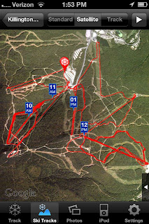 Parked at Snowdon; on the hill at 9:00; skied the Atomic D2 GS #2’s. Overcast with very light snow; temperature in the mid-twenties. Conditions were firm, flat, and fast; they groomed up lots of ice cubes on Highline, Cascade, Bear Trap, and the top of the bottom headwall on Superstar; otherwise conditions were pretty good – maybe it was just the skis. Eleven by eleven – 10 on fixed grip lifts. Twenty-two runs today and I only rode the chair/gondola with someone else once – obviously not many people on the hill today. Phat Cat Challenge today – various big wigs from various ski areas got to see snowmaking and groomer demonstrations from maybe 15-20 vendors.
