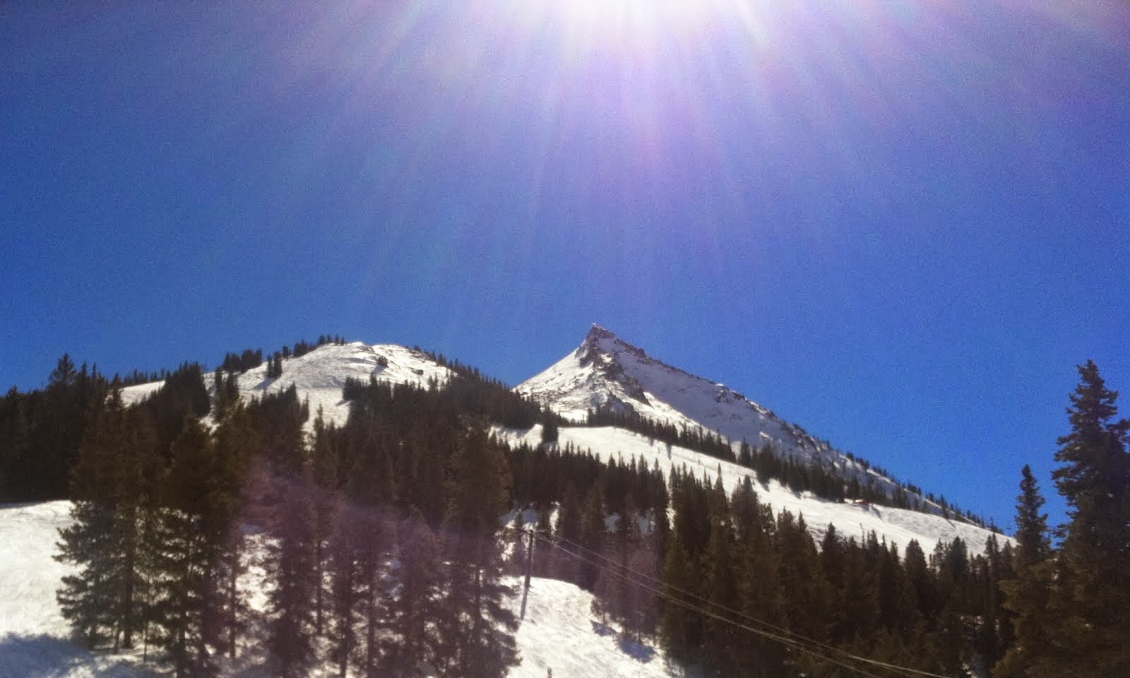 Another beautiful spring day. Out 10:00 to 2:00 with Radvanyi; skied the Blizzard Brahmas; lots of groomers and just a couple 'other' things - thanks for taking it easy on me today Chris; took a couple of good falls this morning, including one where my boot must of stuck a rock or something as I tumbled, because 3 of the 4 teeth on one of the metal buckle clasps are now broken or severely deformed - update a few days later: I also totally destroyed the skis - bases and edges - as bad as I've ever done before; a fairly large crowd, but no real lift lines; the Silver Queen Express lift might be the most efficient lift I've ever ridden - extremely fast with more or less top-to-bottom coverage on a big hill (maybe 2,500 vert?) and access to all types of terrain; very cool looking down, and I mean down, on the town of Crested Butte from the top of the mountain; very tired.